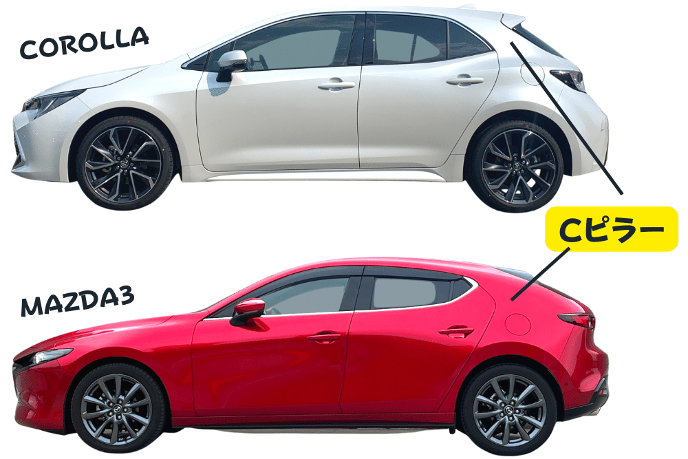 MAZDA3のエクステリアの特徴として、Cピラーの太さが挙げられます。