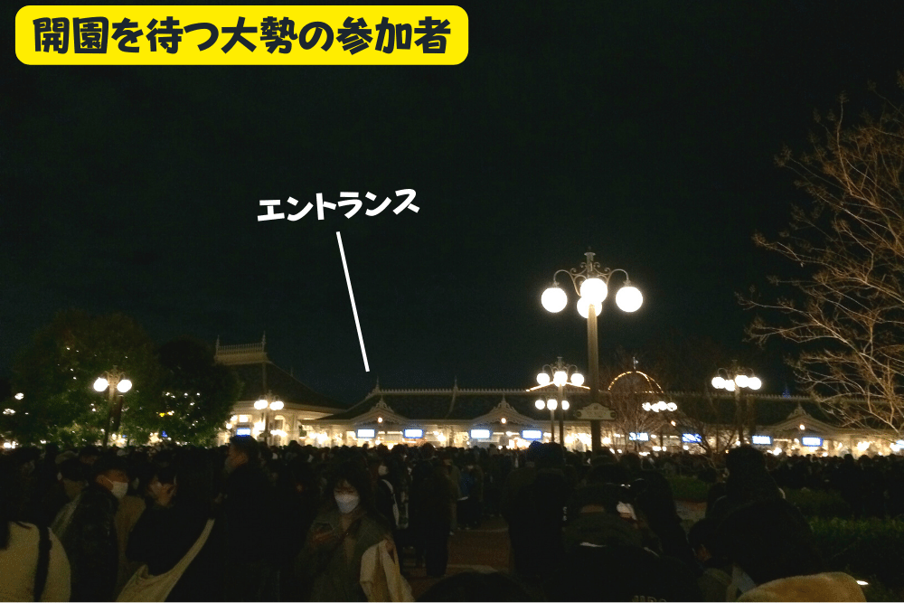 夕食を済ませ、イクスピアリ内を散策し、19時10分(開園20分前)ごろゲートに到着すると、すでにJCBマジカル参加者たちが開園待ちの列を作っていました。
