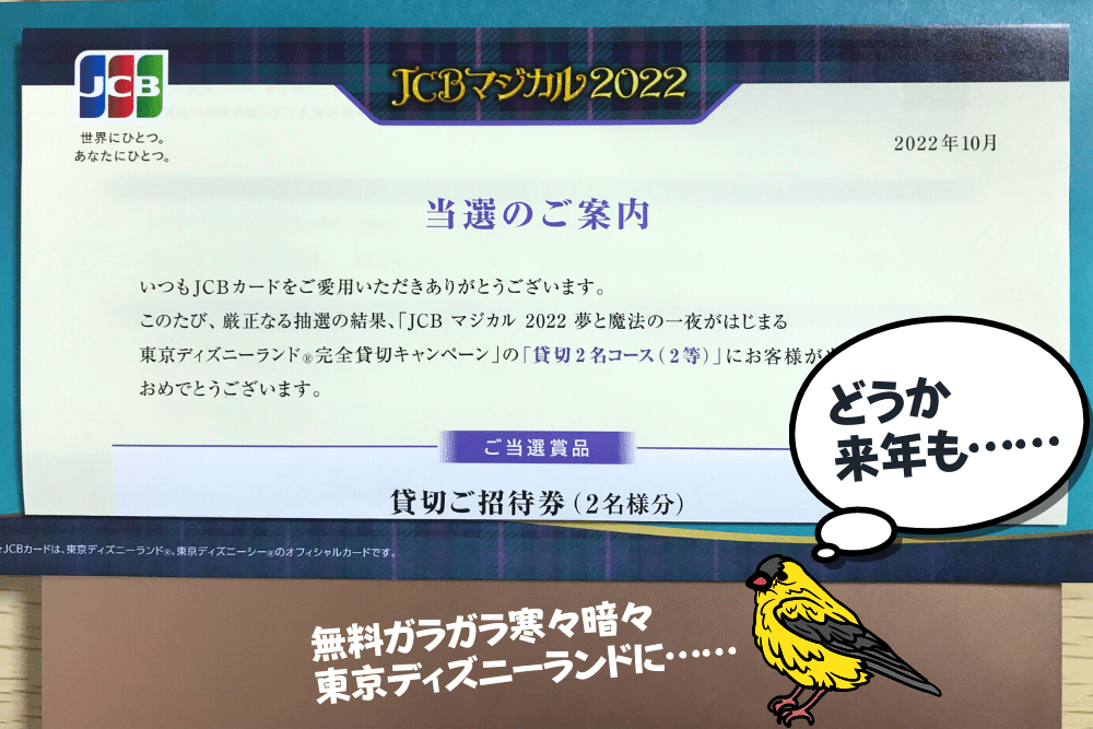 ゆえに、自腹で遊びに行くのではなく、「JCBマジカルに当選して毎年無料でディズニーを満喫する」のが理想だと感じました(当選できるかどうかはともかく)。